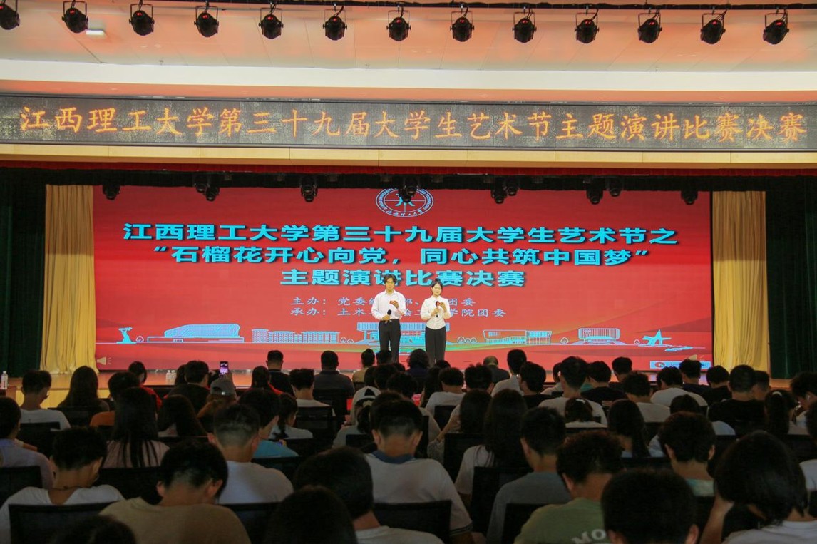 本网讯 10月18日,由党委统战部、校团委主办,土木与测绘工程学院团委、校社团团工委承办的第三十九届大学生艺术节之“石榴花开心向党,同心共筑中国梦”主题演讲比赛决赛在三江校区(东园)三实楼一楼多功能厅举行。