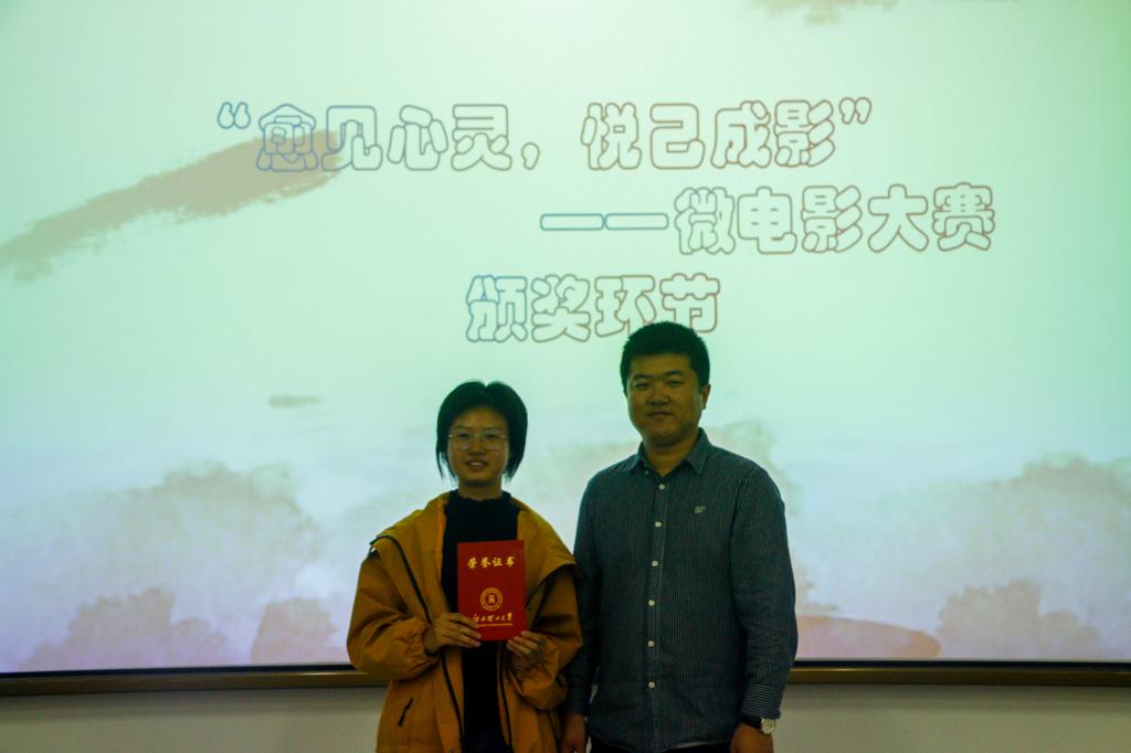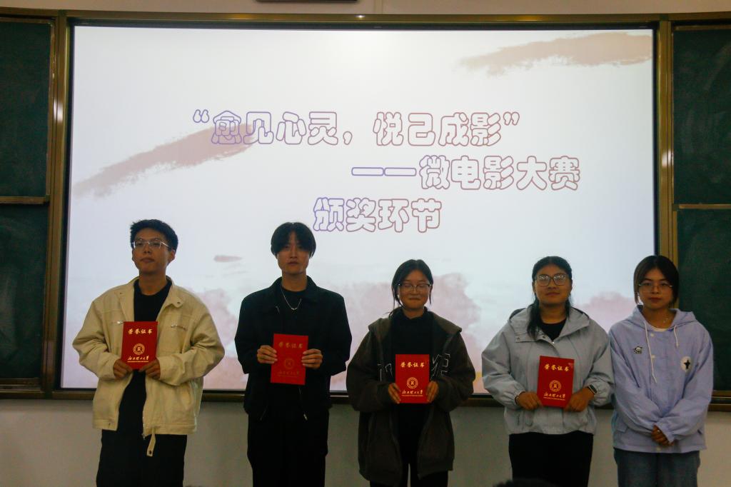 本次大赛以“关注大学生心理健康,展现青春自我成长”为核心,旨在通过微电影这一青年学子喜闻乐见的艺术形式,搭建心理表达与情感共鸣的平台。一部部由学生自主创作的微电影依次放映,镜头下的故事或聚焦学业压力下的自我调节,或讲述人际关系中的理解与包容,或展现青春迷茫中的勇敢探索,每一段影像都饱含着学子对心理健康的思考,对“悦己成长”的诠释,赢得了在场师生的阵阵掌声。